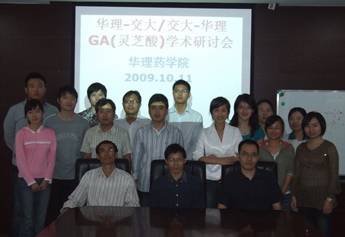 新药创制作为生物医药技术产业化、中药现代化中十分重要的一环,知识产权密集度高,国内现行自主程度尚低,但是近年国家十分重视,发展迅速。为了进一步推动受国内外认可的重要天然抗癌潜在化合物灵芝酸的药物开发进程,钟建江教授实验室于2009年10月11日与太阳集团9728联合举办了华理-交大/交大-华理灵芝酸学术研讨会。