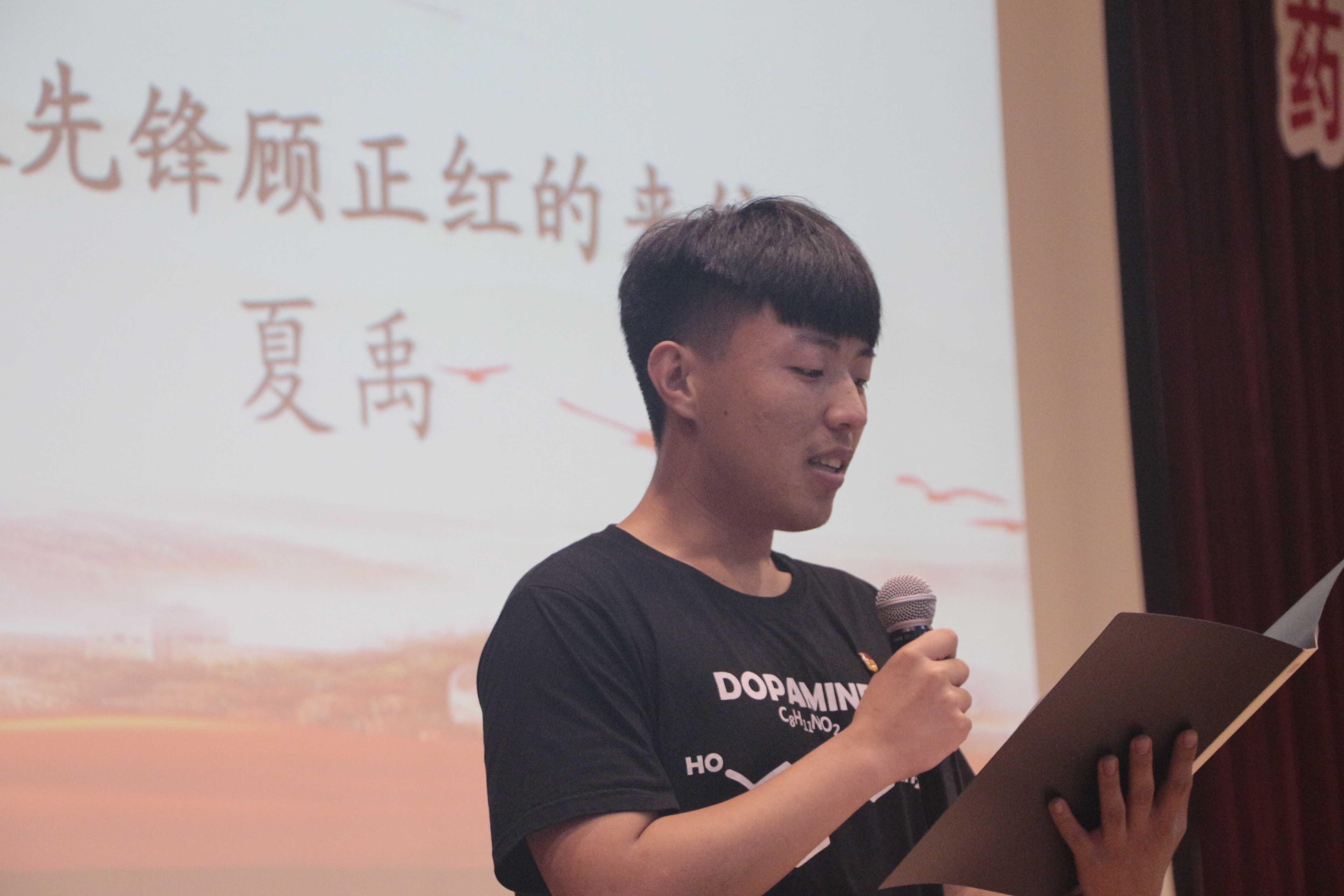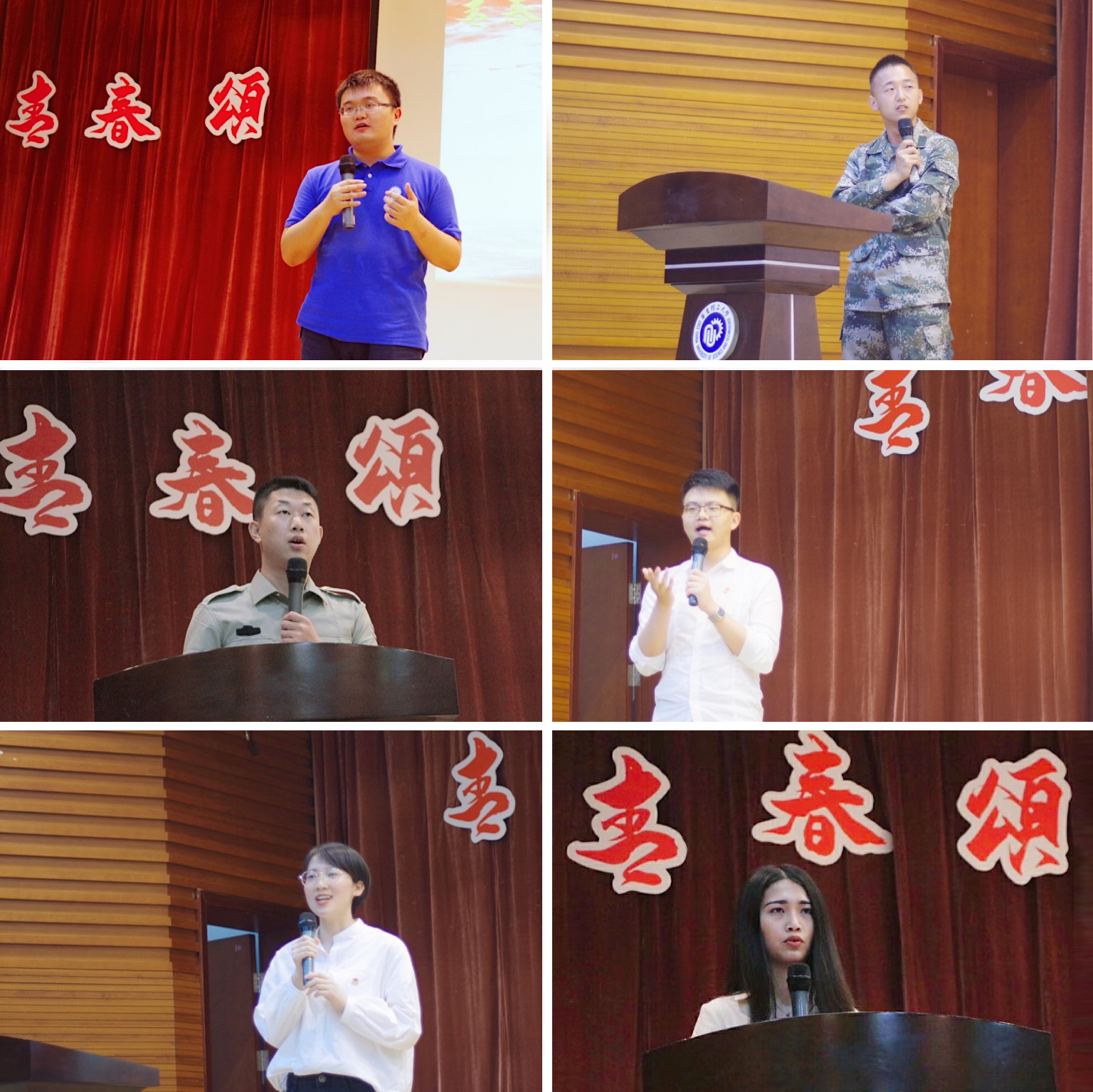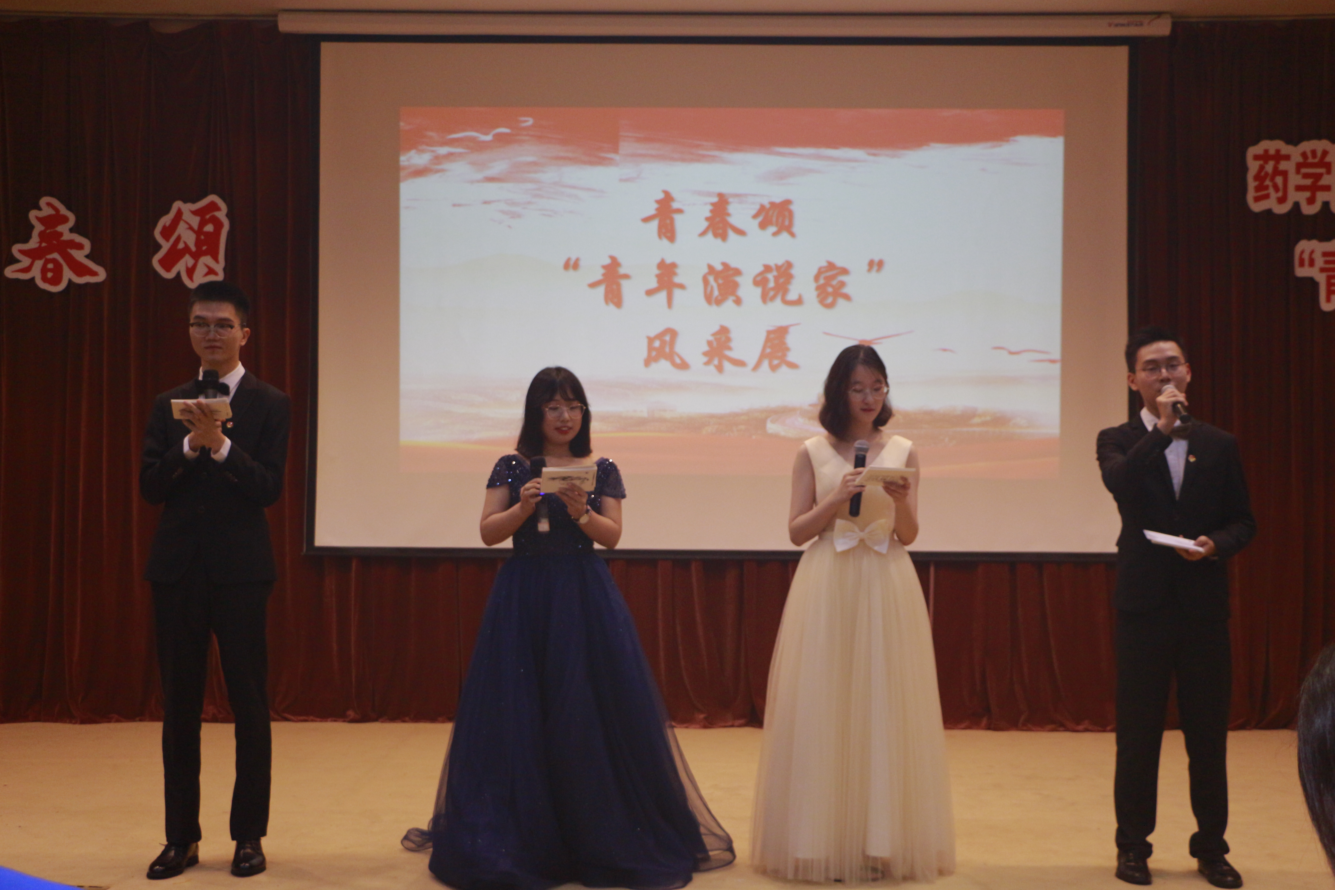 第三篇章“逐梦新时代”邀请了包括学院青年教师和学生在内的六位榜样人物,结合自身经历分享自己的青春故事。青年教师徐缓以如何步入、坚持科研之路为线,分享了自己的科研理想;退伍军人2017级药物制剂专业学生单兴钱,以自己在担任消防兵期间发生的三个故事为大家生动解读了青春报国的真谛;退伍军人2016级制药工程专业学生张涛,为大家讲述了毕业后毅然放弃上海安稳工作,赴藏区服务的好学长李凯的故事;马慧君、祝晨宇、陈佳莹三位同学也通过自身经历分享了在日常学习生活中如何练就过硬本领、如何砥砺奋斗、如何锤炼品德。