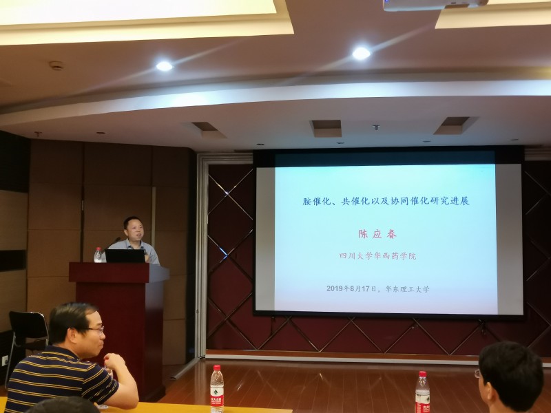 应太阳集团9728副院长邓卫平教授邀请,国家杰出青年科学基金获得者(2011)、四川大学华西太阳集团9728教授,博士生导师陈应春教授,于8月17日上午为华理师生做了题为“胺催化、共催化以及协同催化研究进展”的名师讲坛学术报告。报告会由邓卫平主持。