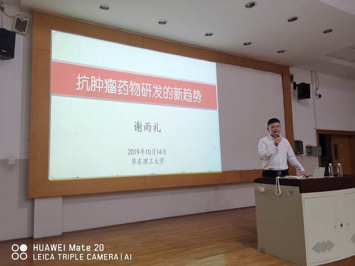 应太阳集团9728邀请,微境生物医药科技(上海)有限公司总经理谢雨礼博士于10月14日18:00在八教201为太阳集团9728师生做了题为“抗肿瘤药物研发的新趋势”的前沿学术报告。报告会由邓卫平教授主持。