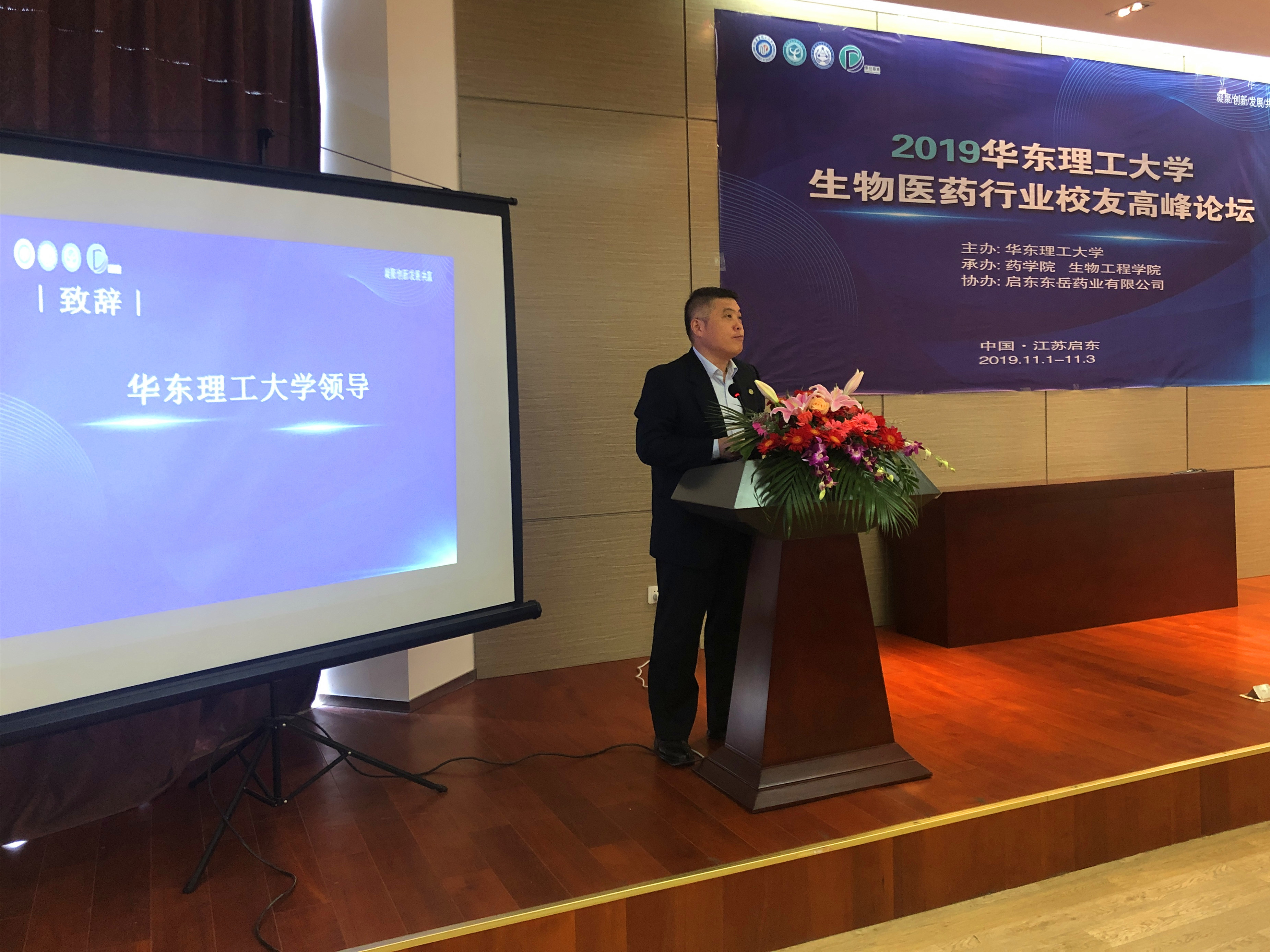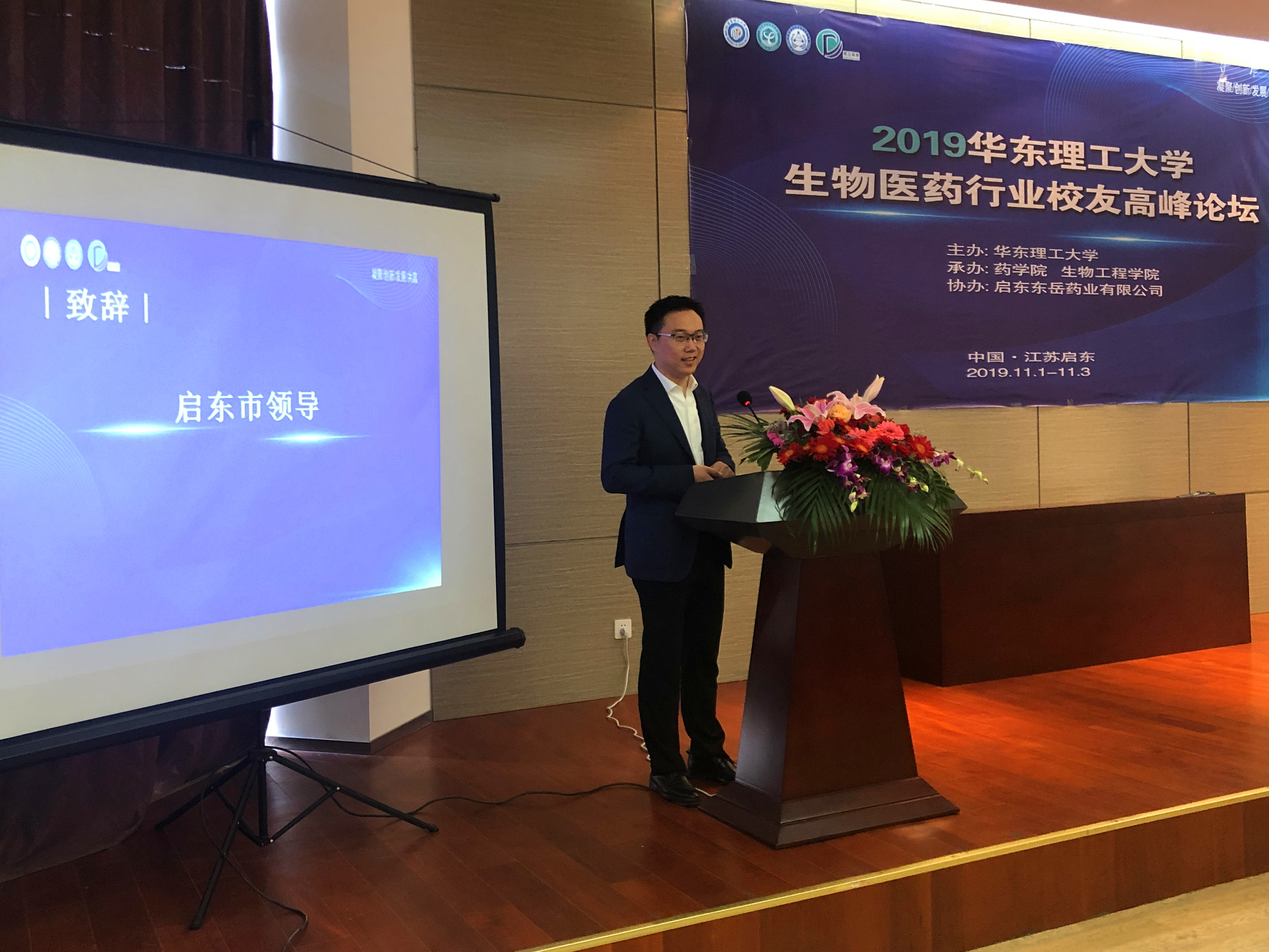 为搭建我校生物医药行业校友沟通交流协作创新平台,共同促进我国生物医药行业的更好发展,2019太阳集团tyc9728生物医药行业校友高峰论坛于11月2日在江苏启东东岳药业有限公司顺利举行。本次论坛由太阳集团tyc9728主办,太阳集团9728和生物工程学院联合承办,江苏启东东岳药业有限公司协办。太阳集团tyc9728副校长李涛,启东市人民政府副市长方波,启东市商务局局长宋海华,太阳集团tyc9728南通校友会秘书长郭光宜、学校校友与发展联络处处长兼校友会秘书长李建伟、资产经营有限公司董事长付尧、太阳集团9728和生物工程学院党政领导等出席。近40位生物医药行业的杰出校友和部分我校教师参加了论坛。会议由太阳集团9728院长宋恭华主持。