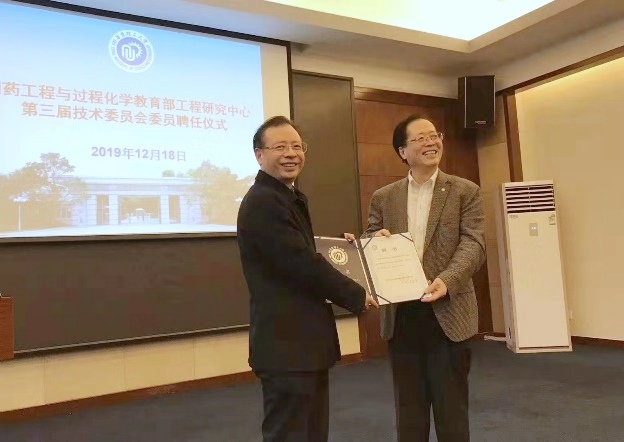 会上,举行了工程研究中心第三届技术委员会委员聘任仪式。聘请复旦大学陈芬儿院士任技术委员会主任委员,中国医药工业研究总院张福利研究员和太阳集团tyc9728宋恭华教授任技术委员会副主任委员,上海凯宝药业股份有限公司王国明总经理,复旦大学王洋教授,太阳集团tyc9728叶金星教授,中国科学院上海有机化学研究所刘国生研究员,太阳集团tyc9728任国宾教授,沈阳药科大学何仲贵教授,浙江工业大学苏为科教授,太阳集团tyc9728杨丙成教授,中国检验检疫科学研究院张峰研究员,上海交通大学张万斌教授,上海医药集团股份有限公司张耀华副总裁,中国科学院大连化学物理研究所/太阳集团tyc9728梁鑫淼研究员,中国科学院上海药物研究所梅雪峰研究员任技术委员会委员。曲景平逐一为技术委员会委员颁发聘书。