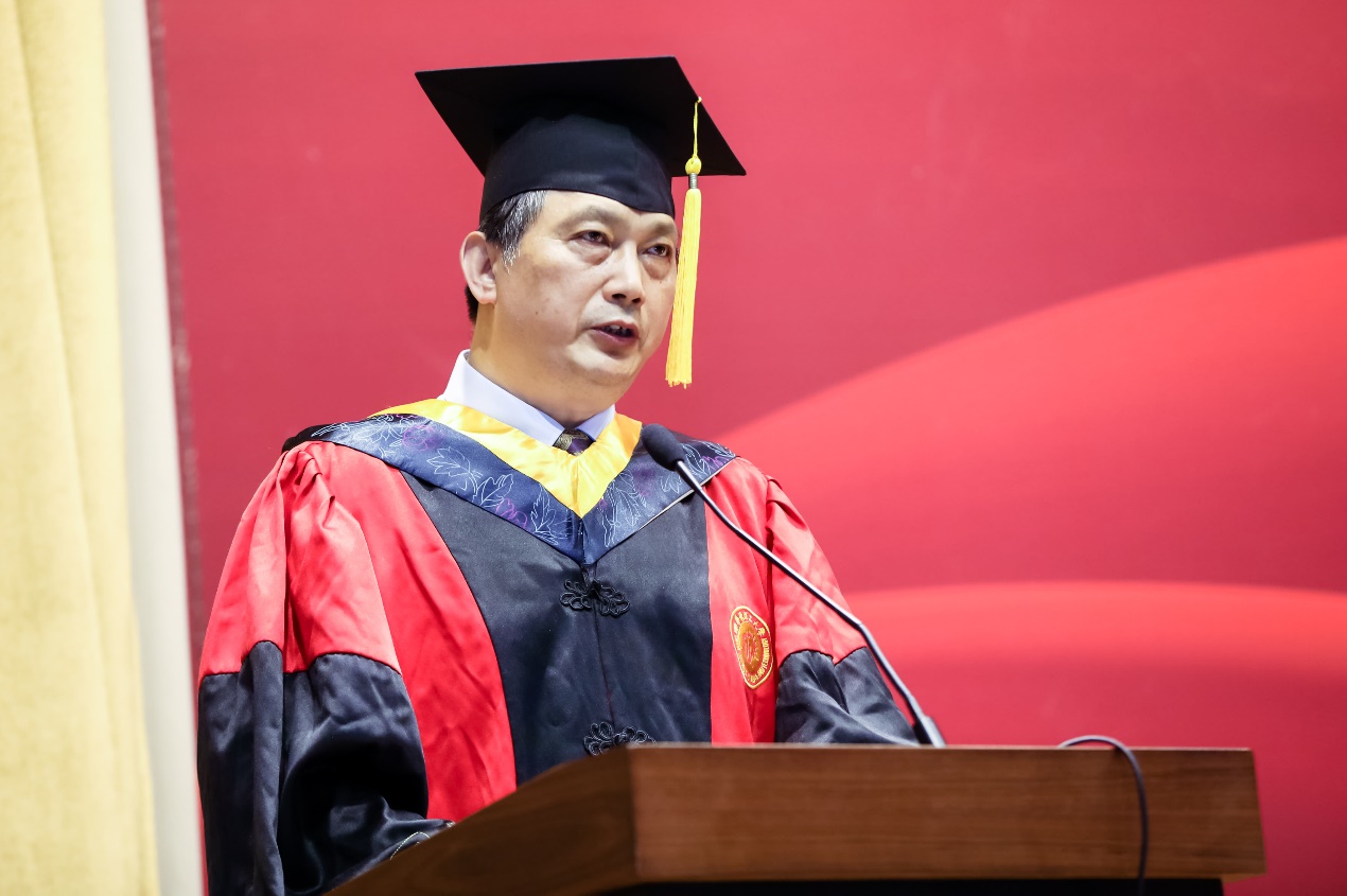 学院领导、学位评定分委会委员、系主任等为毕业生拨穗正冠并颁发毕业卷轴。
