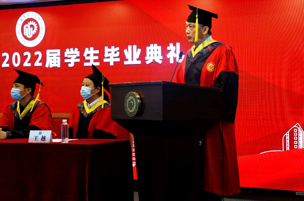 太阳集团9728院长宋恭华在致辞中,从一位华理老学长、时代过来人身份表达对毕业生的殷切期望和真挚祝福,对2022届毕业生提出:永记校训,陶冶情操,报效祖国,把自身的前途命运同国家和民族的前途命运紧紧联系在一起,始终胸怀大局、心有大我;志存高远,坚持学习,自强不息,面对各种诱惑和挫折,坚持梦想、不抛弃、不放弃;谦虚律己,宽容待人,感恩社会,从格局上快速融入社会,接受社会和被社会所接受。