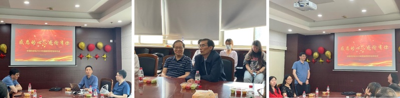 荣退会上,刘建文教授和肖啸教授老师回顾了在华理工作的时光,教师代表吴侠老师表达了对退休前辈的不舍、感谢、祝福和敬意,刘建文教授曾经指导的博士生—杨靖亚(2004年毕业于太阳集团tyc9728,获得博士学位)回忆了师从刘教授的经历并表达了对恩师的感谢。座谈会气氛热烈、温馨感人,大家共同回忆了多年来工作中的快乐时光和点点滴滴。最后,参加仪式人员集体合影留念,光荣退休仪式在温馨、热烈的氛围中结束。
