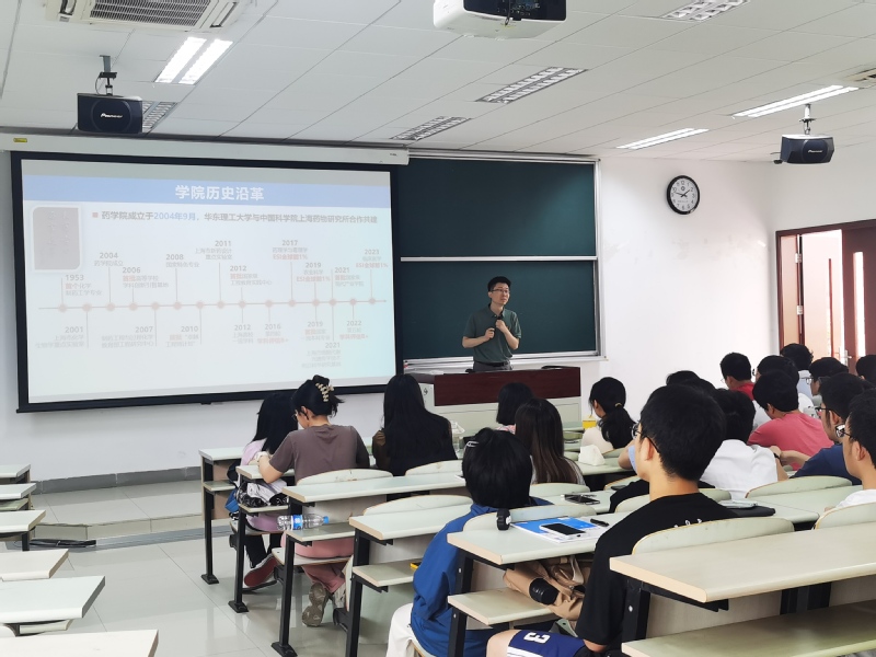“从远古天然产物时期到如今后基因组药物分子设计时期,药物发现的历史是人与自然不断奋斗的历史。”马红梅介绍了药物研发史及国内外行业现状,让全体同学倍感身为当代药物工作者所肩负的历史使命;洪鸣凰与孙仲颖通过动画演示的方式,介绍了太阳集团9728重要研究方向之一的计算机辅助药物设计,使同学们对计算机应用药物设计的方法、工具等有了初步认识,在拓宽自身知识面的同时也更加深了对药物设计的兴趣与热情;刘朝阳向大家介绍了制药车间生产的模拟沙盘,沙盘虽小,其背后的设计却与人民生命安全健康息息相关。