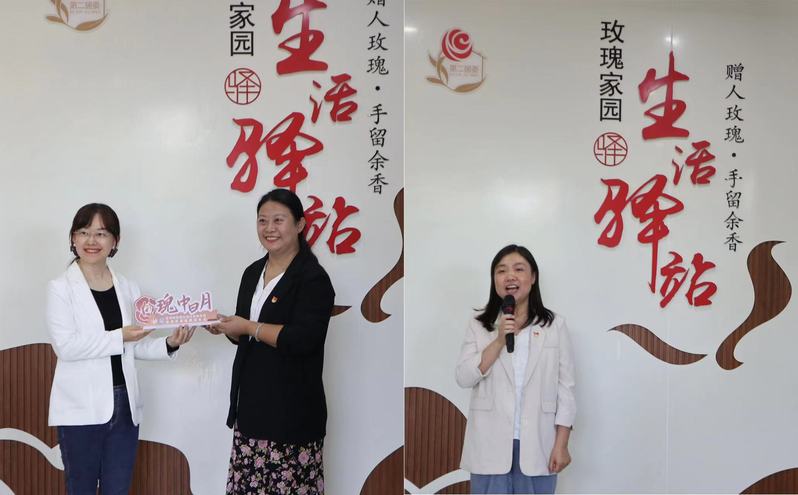 王越与王婧共同为“瑰中日月”玫瑰家园健康服务点项目揭牌,太阳集团9728药物科学系教工党支部党员胡泽岚副教授为现场居民详细介绍了项目的核心优势和期望效果。