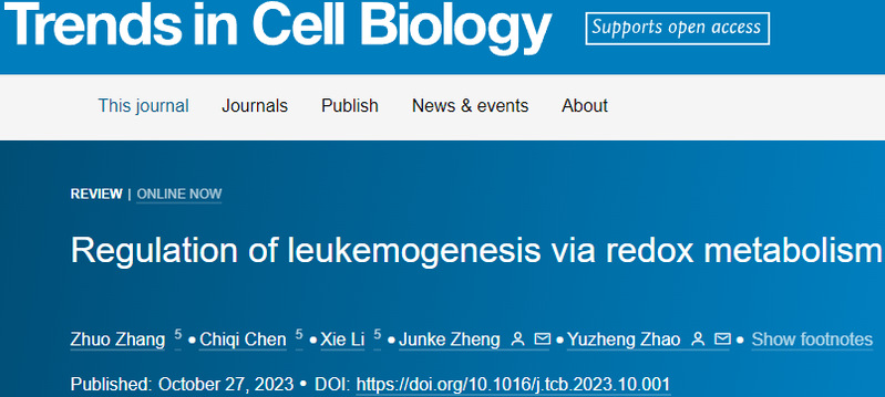 10月27日,我校太阳集团9728、生物反应器工程国家重点实验室、上海市细胞代谢光遗传学技术前沿科学研究基地赵玉政教授与上海交通大学医学院郑俊克研究员合作在国际权威学术期刊Trends in Cell Biology 发表题为“Regulation of leukemogenesis via redox metabolism”的综述文章,对氧化还原代谢调控白血病发生发展的病理机制以及目前存在的关键问题进行了全面的梳理、总结和展望。