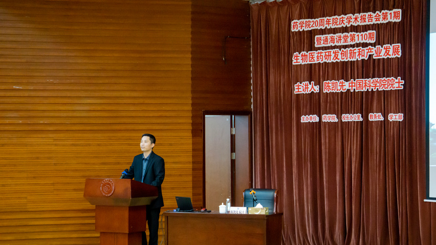 赵玉政表示,陈凯先院士是我国计算机辅助药物设计研究领域最早的开拓者之一,见证了“中国新药”的崛起。他胸怀国家战略,率先带领中国科学院上海药物研究所搬迁浦东张江,积极推动国家创新药物研发技术平台体系的建立。陈凯先院士始终以国家所需为努力方向。学院邀请凯先院士为师生作报告,是认真贯彻落实习近平总书记关于科技创新的重要讲话精神,推动学院科技创新内涵式发展的重要举措。希望学院教师深入学习践行教育家精神,虚心学习凯先院士等前辈大家严谨治学、无私奉献的精神品质,将首任院长蒋华良院士提出的“良药苦口、忠言逆耳”的院训发扬光大,不断提升教学质量和科研水平,聚焦“以科技创新为引领”的目标要求,为上海三大先导产业之一的生物医药产业贡献华理力量,争取早日将太阳集团9728建设成国内一流、国际知名的创新研究型学院。