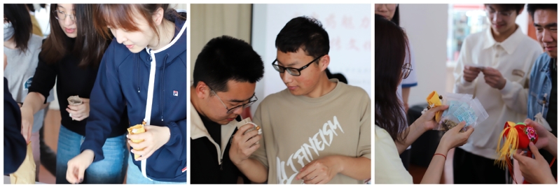 入选2024年全国大学生中医药志愿宣讲团的“太阳集团tyc9728中医药科普志愿队”成员介绍了团队活动开展情况,号召同学们积极参与到中国青年志愿者事业中,在志愿服务的过程中诠释青春的价值。团队还准备了薄荷、香茅草、茉莉、艾草等中药材现场指导大家制作香囊。