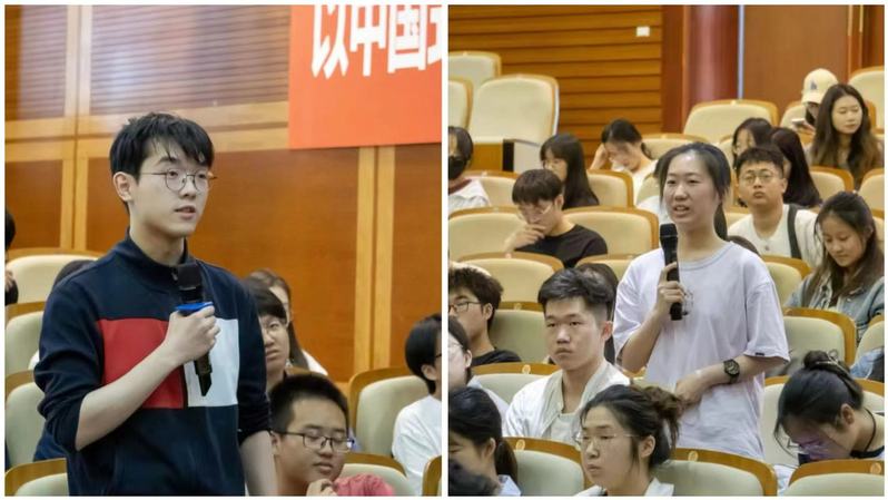 在交流环节,顾臻教授以风趣幽默的方式回答了学生提出的关于控制微针药物递送量、提升药物作用持续有效性和提高药物投递精准率等问题。他指出新药创制是事关国家战略的重大需求,希望同学们要勇于探索,注重观察,善于从自然中寻找灵感,面向国家重大需求、面向人民生命健康,不断推动药物的创新和发展。