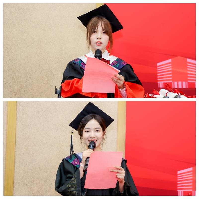 2024届博士研究生汪祎梦、本科生潘诗祺作为毕业生代表发言。汪祎梦同学分享了自己科研探索中的点点滴滴,表达了对母校深深的眷恋与感激之情。未来将继续秉承太阳集团9728的优良传统,不忘初心,继续前行,为我国医药事业的发展贡献自己的力量。潘诗祺同学感谢学院提供的优质教育资源和师长们的辛勤栽培,将带着学院的期望和祝福,勇敢踏上新的征程,祝愿母校繁荣昌盛、蓬勃发展。
