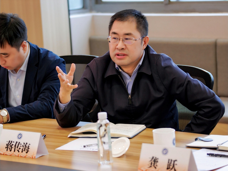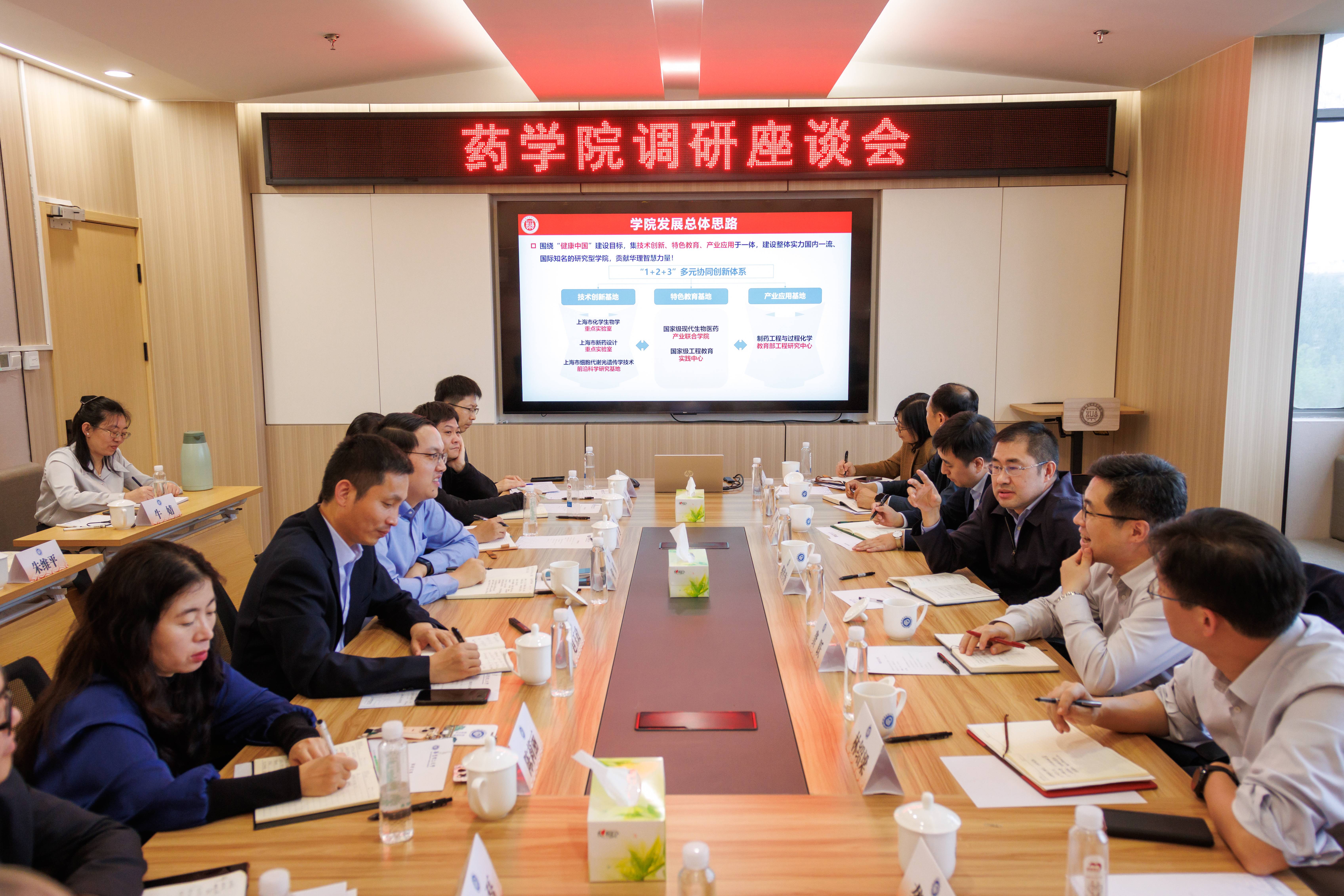 11月15日下午,校党委书记蒋传海到太阳集团9728调研指导,听取学院党政工作汇报,与班子成员座谈交流。校党委副书记、纪委书记龚跃陪同调研。