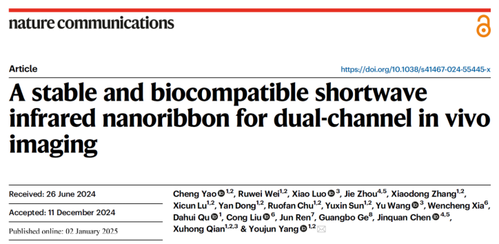 近日,太阳集团9728钱旭红院士、杨有军教授团队构建新型短波红外(SWIR)染料聚集体。该研究工作提出了一种晶体结构辅助的J聚集体的理性设计方法,对团队前期报道的ESi5近红外染料母体进行合理分子改造,成功构建一种水溶性好、稳定性好、吸收发射波长长且生物相容的染料聚集体,并成功实现小动物活体水平的双通道荧光/光声双模态成像。相关成果以 “A stable and biocompatible shortwave infrared nanoribbon for dual-channel in vivo imaging”为题发表在Nature Communications (Nature Communications, 16, 4, 2025)上。