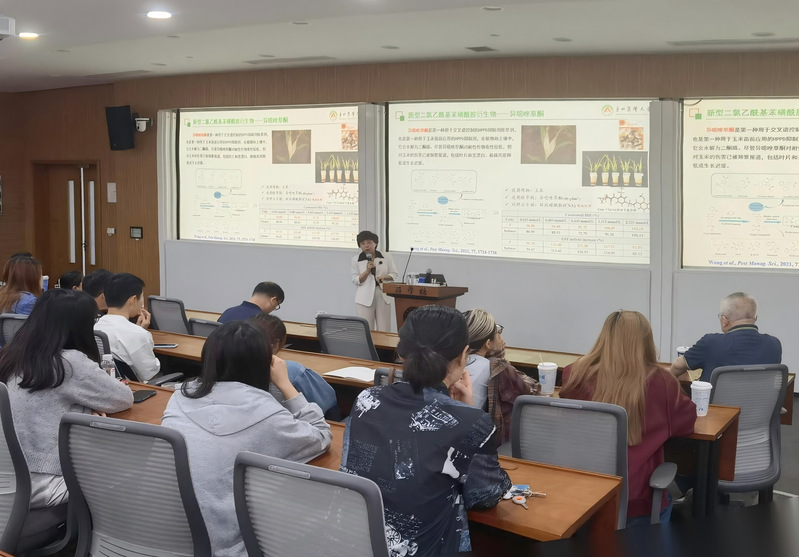 付颖教授近年来主要开展农用功能性分子设计及创制工作,采用计算机辅助药物设计及分子碎片重组等技术设计绿色农药。她以“基于问题导向的除草剂安全剂创制及作用机制研究”为题,从杂草防治用药安全问题出发,系统介绍了除草剂安全剂发展历史、安全使用关键技术以及特色创制历程。