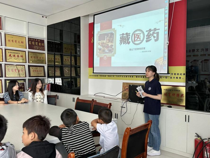 两校团队紧密围绕国家弘扬中医药文化的战略部署,立足高原独特的藏医药文化,将专业所学转化为启迪童心的钥匙。通过系统介绍藏医药的历史脉络与“五行三因”的理论框架,引导孩子们识别多种常见藏药的外观、功效和使用方法。这堂生动的藏医药启蒙课,不仅传递了知识,更增进了孩子们对民族文化的认同与自信,在药香萦绕中传承着民族智慧。
