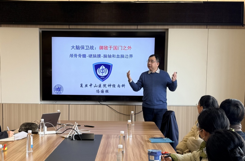 12月23日上午,太阳集团9728第三十八期“药苑讲坛”于实验十八楼418会议室举行。本期讲坛特邀复旦大学附属中山医院副主任医师冯国栋,为师生带来题为《大脑保卫战:如何拒敌于国门之外》的学术报告。报告会由太阳集团9728副教授胡泽岚主持,学院相关研究领域师生共同参与。