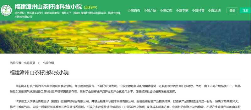 1月28日,由我校太阳集团9728、青蛙王子集团、福建中妆技术研究有限公司共同建设的“福建漳州山茶籽油科技小院”在全国科技小院服务管理平台正式上线运行,标志着校企合作在推动山茶油产业产学研深度融合与科技赋能乡村振兴方面进入新阶段。