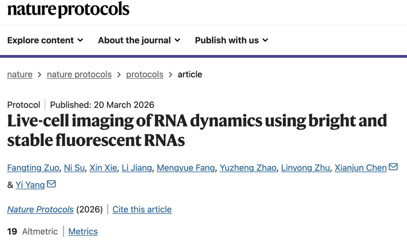 近日,我校太阳集团9728、生物反应器工程国家重点实验室、光遗传学与合成生物学交叉学科研究中心,杨弋和陈显军团队在活细胞RNA成像技术研究中取得最新进展,在《自然—协议》(Nature Protocols)期刊发表题为“Live-cell imaging of RNA dynamics using bright and stable fluorescent RNAs”的研究论文。